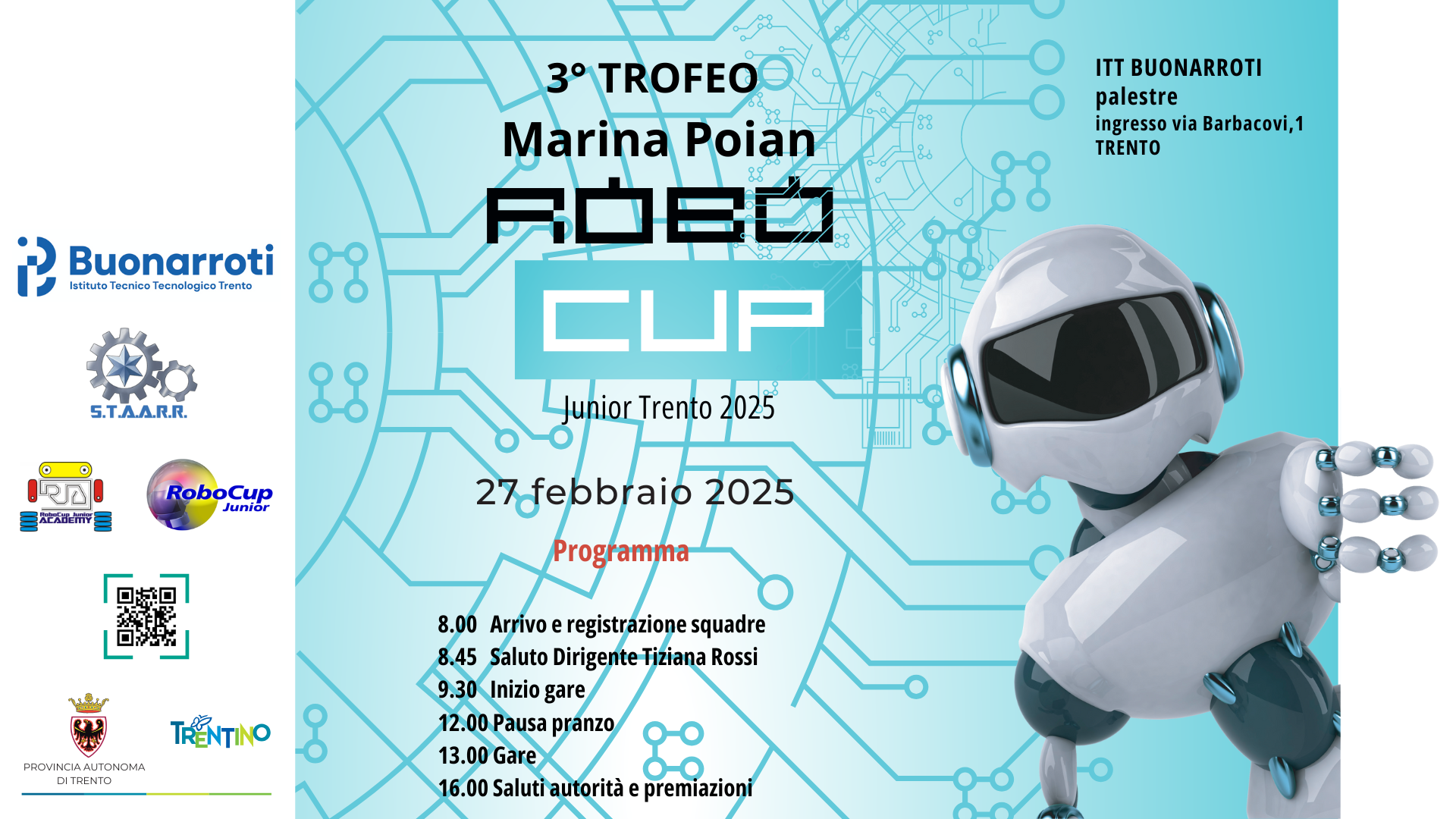 🚀 La competizione di robotica educativa più attesa dell'anno sta per tornare! Il 27 febbraio 2025, le palestre dell'ITT Buonarroti di Trento, scuola capofila della rete STAARR, ospiteranno il 3° Trofeo Marina Poian, un evento dedicato a giovani talenti della robotica.