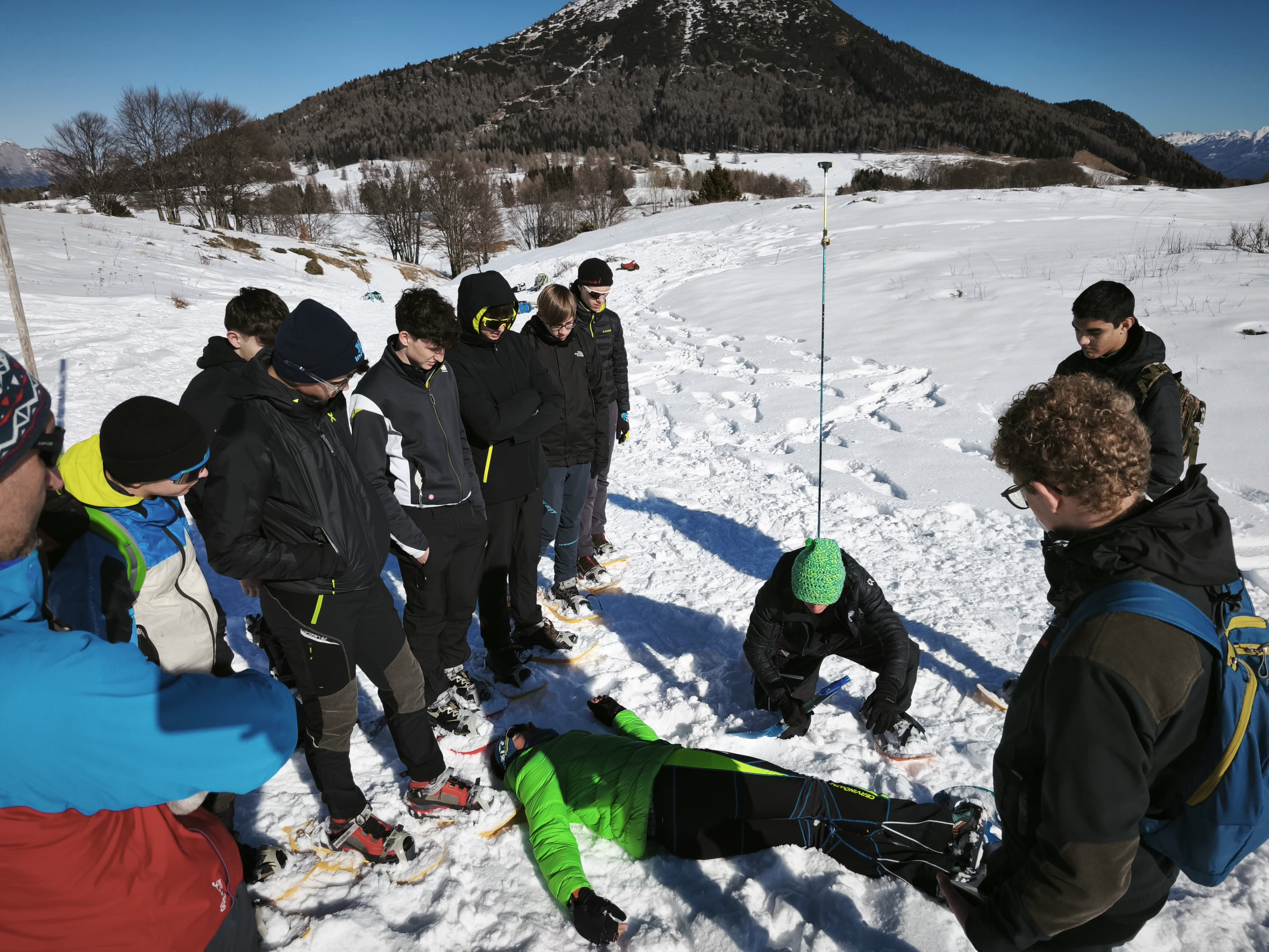 Un momento particolarmente coinvolgente è stato la simulazione di ricerca di un disperso in valanga, durante la quale gli studenti hanno appreso le prime nozioni di soccorso e i principali rischi, che l'ambiente innevato e la stagione invernale nasconde in mezzo alle sue meraviglie. Questa esperienza pratica ha permesso agli studenti di comprendere l'importanza della rapidità e dell'efficienza nelle operazioni di salvataggio e ancora di più ha sottolineato l'importanza di una formazione adeguata per prevenire le situazioni di rischio in ambiente innevato.