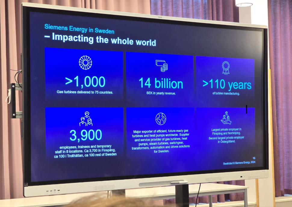 Abbiamo visitato Siemens Energy, che produce turbine a gas ed è impegnata a trovare soluzioni più "verdi", come l'idrogeno, con l'obiettivo di usarlo al 70% nei prossimi cinque anni. Poi siamo stati alla KL Industri AB, che produce cabine elettriche e punta molto sull'efficienza dei processi e sul benessere dei dipendenti.